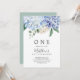 Elegant Blue Hydrangea White First Birthday Party Invitation