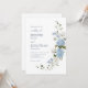 Elegant Blue Hydrangea White Roses Floral Wedding Invitation