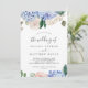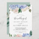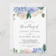 This elegant blue hydrangea white wedding invitation is perfect for a spring or summer wedding. The classic floral design features soft powder blue watercolor hydrangeas accented with neutral blush pink flowers and green leaves.