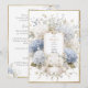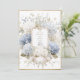 Lovely vintage romantic soft colors of blue and ivory shades of hydrangeas in full bloom mixed with wispy greens and flowers. Perfect for any season wedding. All done on a clean white background with a faux gold rustic frame. Budget invitation with all your event details located on the reverse side of this lovely invitation.
