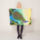 Original fine art design of an elegant blue Indian peacock by artist Carolyn McFann printed on a quality fleece blanket for wild bird fans of all ages.