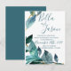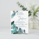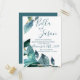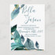 Elegant Blue Leaves Script Wedding Invitation Postcard