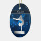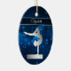 This elegant ornament features a silver silhouette female gymnast on a balance beam against a pretty blue background with tiny star lights. Her name is in silver on a semi transparent banner that is framed in white faux glitter. The back of the ornament has the same blue background with four custom text fields. Perfect for that daughter, granddaughter, or niece who is a gymnast.