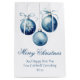 This elegant Merry Christmas gift bag features chic blue cursive script next to a beautiful watercolor drawing of holiday ornaments with a bow. Customise these elegant business holiday presents for clients or friends and family within your company.