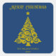 Elegant Blue Merry Christmas Tree Holiday Gift Square Sticker