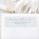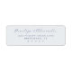 These return address labels feature a minimalist and elegant design with ample negative space, creating a sophisticated look. The soft light blue-gray background complements the deep navy blue cursive and sans-serif typography, ensuring readability while maintaining a refined aesthetic. Perfect for formal occasions like weddings or significant announcements, these labels offer customizability for personal touches without overwhelming decorative elements. Their clean composition and timeless style make them ideal for those seeking understated luxury in their stationery.