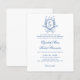 This wedding invitation features a classic and elegant design with a refined blue and white colour scheme. The centerpiece is a sophisticated monogram crest, adding a personalised touch. The invitation details are presented in an elegant script and serif font, combining traditional and timeless elements to create a beautiful announcement for your special day.
