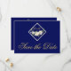 Share the exciting news with your friends and family with this elegant floral blue monogram with gold lettering Save the Date flat card. This design features customisable monogram letters with a floral design on the front. Personalise the colour, font, text, and style on the back.