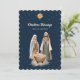 Elegant Blue Nativity Scene Stars Christian Holiday Card