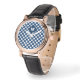 Elegant Blue Navy White Stylish Monogrammed Watch has a nice retro withe dotted pattern of blue with white dots. The watch is elegant and is nice to wear with your initial or as a gift for your friend. Personalise it with your initial.