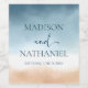 Elegant Blue Ocean Beach Shore Sand Wedding Wine Label