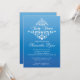 Beautiful unique & elegant blue ombre baby shower invitation for a baby boy featuring a contemporary white damask floral leaf flourish. Available in our shop in a large selection of modern colour choices. Easy to personalise with your party information and guaranteed to make a perfect first impression. An Elegant baby shower invitation for a boys baby shower.