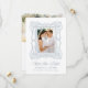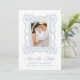 Announce your wedding with this elegant blue ornate frame photo save the date, featuring a hand-drawn antique picture frame surrounding the couple’s vertical engagement photo. “Save the Date” is displayed in graceful calligraphy, paired with classic serif lettering for the couple’s names, wedding date, and location for a polished, balanced look. The back features a horizontal engagement photo, with custom text and a scannable QR code shown below to direct guests to your wedding website. This personalized photo save the date blends refined design with modern convenience and offers a stylish way to share your wedding date.