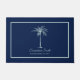 Add your own special touch to this simply elegant design featuring your family name or phrase and established date in light pale teal text and palm tree framed in light pale teal border over a navy blue background.