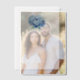 This is a minimalist style image featuring an elegant blue peony at the top, set against a soft gray background. The invitation for Isabella & Patrick's wedding on Saturday, June 6, 2025, at Seaside Palms Resort in Naples, Florida, is written in a sophisticated serif font. The overall mood is serene and romantic, with cool tones that evoke a sense of calm and beauty. Perfect for couples looking to create a refined and timeless wedding announcement.