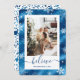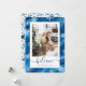 Elegant faux blue foil Christmas card featuring snowflakes. Easily personalise this holiday card with your photo and text.