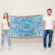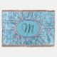 Elegant Blue Pink Watercolor Monogram Throw Blanket
