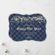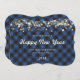 Blue buffalo plaid New Year card featuring glowing lights and stars on a blue buffalo plaid background.