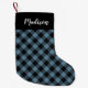 Add a rustic touch to your hearth and home with Elegant Plaid Christmas stockings. The custom holiday stockings feature a blue buffalo plaid pattern with a black band at the top. Personalise your plaid stockings with your name or monogram to create a custom design.