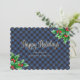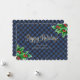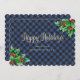 Elegant Blue Plaid Watercolor Holly Business Holiday Card