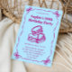 Celebrate a milestone birthday in sweet, charming style with this elegant macaron-themed invitation. Featuring hand-drawn macaron illustrations, a soft pastel blue background, and a decorative purple ribbon border, this design blends playful details with a classy, feminine touch.
