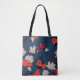 Image by Theraphosath | Shutterstock. Image ID: 1051811810 | This pattern features red and tan flowers on a dark blue background.