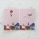 an elegant birthday card with hot air balloons and little roofs of the houses