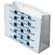 Add a touch of sophistication to your holiday gifting with this elegant gift bag featuring a modern pattern of glossy black ornaments tied with delicate blue ribbons. The repeating design evokes festive winter charm with a minimalist aesthetic, making it perfect for Christmas, New Year, or any stylish occasion. Printed on durable glossy paper, this bag brings a refined, contemporary look to every present and pairs beautifully with silver or pastel wrapping accessories