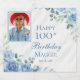 Elegant Blue Rose Floral 100th Birthday Party Sparkling Wine Label