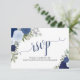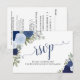 Elegant Blue Roses Floral Calligraphy Wedding RSVP Card