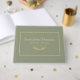 NewParkLane - Elegant, personalised memorial service book of condolence in sage green, with a faux gold winged heart and text in a gold rectangular frame.