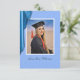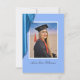 A unique card with an elegant blue, satin color scheme. Similar blue background on the back of the card containing party details. Suitable for a high school or college graduation. The smaller size allows you to include it with a graduation announcement - sent only to those you wish to invite to the party. The photo and all text are easily changed with the template. Selecting “Personalize this design” offers you several edit options to easily change the text (wording, plus type font, color, size, position) and to edit the design elements. You may also want to scroll down to the section “Transfer design to a product” for a few suggestions about other items this design can be used on. NOTE: there are online sources that allow you to create a free graduation website. Just do a search for it and choose the one you want.