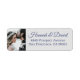 This simply chic return address label template features your photo along with your names in an elegant, classic script above your address on a light grey base. It works wonderfully with a variety of wedding themes and is also great for other special occasions! You can use two first names or any other format that suits your needs. You can also change the background colour and the style, colour and size of the text. The default text colour is an elegant medium dark shade of blue. Create your own custom look with the intuitive design tools your favourite photo and your inspiration. And please check our store for a selection of distinctive return address labels!