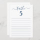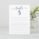 Elegant Blue Script Table Seating Lined Cards for Handwriting Names. The sample is shown 10 lines for handwritten names on a 5x7" size white card with matte finish; other card sizes and styles as well as text/line colours available. ASSISTANCE:  For help with design modification or personalisation or transferring the design to another product, contact the designer BEFORE ORDERING via the Zazzle Chat MESSAGE tab below or email makeitaboutyoustore@gmail.com.