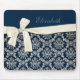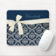 Elegant Blue Silver Damask Diamond Bow Monogrammed Mouse Mat