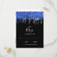 Elegant Blue Silver Glitter Drips Wedding RSVP Invitation Postcard