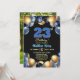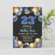 An elegant modern design featuring blue 23 number with gold edges and balloons with silver, blue and gold glitter and a special photo of the birthday person on the back of the invitation. Customize the details for a unique and chic Birthday Celebration.