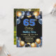An elegant modern design featuring blue 65 number with gold edges and balloons with silver, blue and gold glitter and a special photo of the birthday person on the back of the invitation. Customize the details for a unique and chic Birthday Celebration.