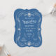 Elegant Blue & Silver Wreath Monochromatic Wedding Invitation