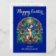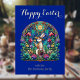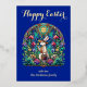 Elegant Blue Stained Glass Bunny Gardener Easter Foil Holiday Card
