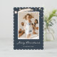 Modern blue photo Merry Christmas card featuring stars. Easily personalise this elegant photo holiday card with your photo, text and family name.
