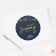 This elegant 70th birthday round sticker feature strings of lights and the word "Seventy" in faux gold against a dark blue background. Check out other matching items here https://www.zazzle.com/collections/strings_of_lights_faux_gold_celebration_collection-119311942951401241?rf=238364477188679314