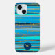 Elegant Blue Stripes Pattern Monogram iPhone 15 Case