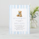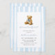Elegant Blue Stripes Teddy Bear Baby Shower Invitation