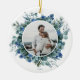 Elegant Blue Teal Floral Wreath Photo Ceramic Tree Decoration