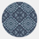 Elegant blue tile pattern classic round sticker