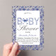 Elegant Blue Toile de Jouy and Bow Baby Shower Acrylic Invitations