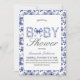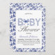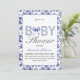 Elegant Blue Toile de Jouy and Bow Baby Shower Invitation