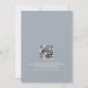 Elegant Dusty Blue Toile De Jouy Border QR Code Wedding. This modern design has a pale blue chinoiserie border encompassing the words which you can easily personalise. Add your QR code to your wedding website on the back so your guests can RSVP and see all the details online. The code will automatically update when you change the sample URL to that of your own wedding website.