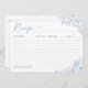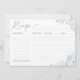Elegant blue Recipe Card for Bridal Shower invitation insert with classic chinoiserie design. This floral Toile de Jouy pattern is perfect for an elegant garden tea Bridal Shower.